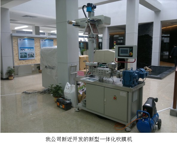 我公司作为高分子材料加工测试与成型仪器装备研发、制造企业之一在华南协同创新研究院揭牌之际有幸展示了我公司新近开发的新型一体化吹膜机。作为我公司的专利产品,该吹膜机集常规塑料熔融塑化、定量挤出、吹膜、冷却定型、牵引收卷等功能于一体,膜架可电动升降,且配置调整框架高度的膜架伸缩装置,方便工艺调整、装卸和运输,是高分子材料高科技企业、高等院校高分子材料实验室科研的理想之选。