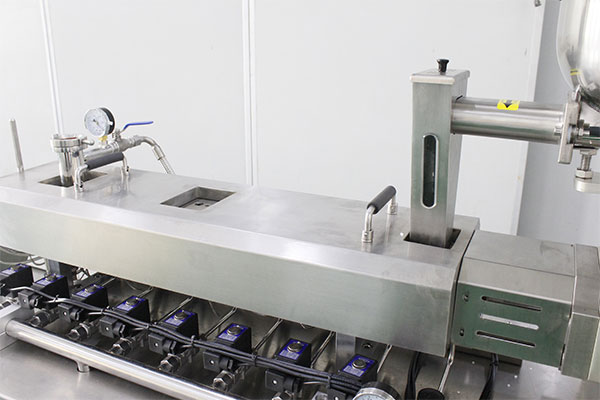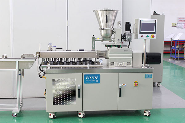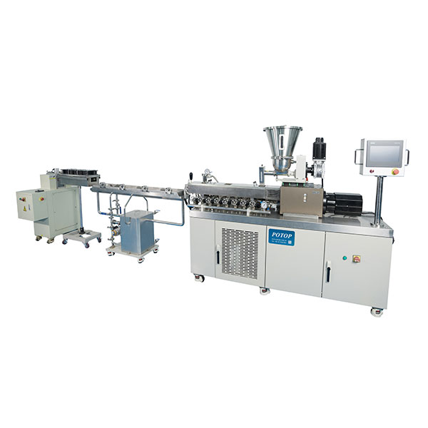 双螺杆挤出造粒线由剖分式小型精密双螺杆挤出机、换网器、造粒模具、冷却水槽、风干装置以及小型精密切粒机组成。剖分式小型精密双螺杆挤出机采用剖分式机筒,采用平行啮合同向双结构螺杆,可根据物料特性对螺纹元件进行重新组合,实现对不同特性物料的混炼,提高混合混炼效果。